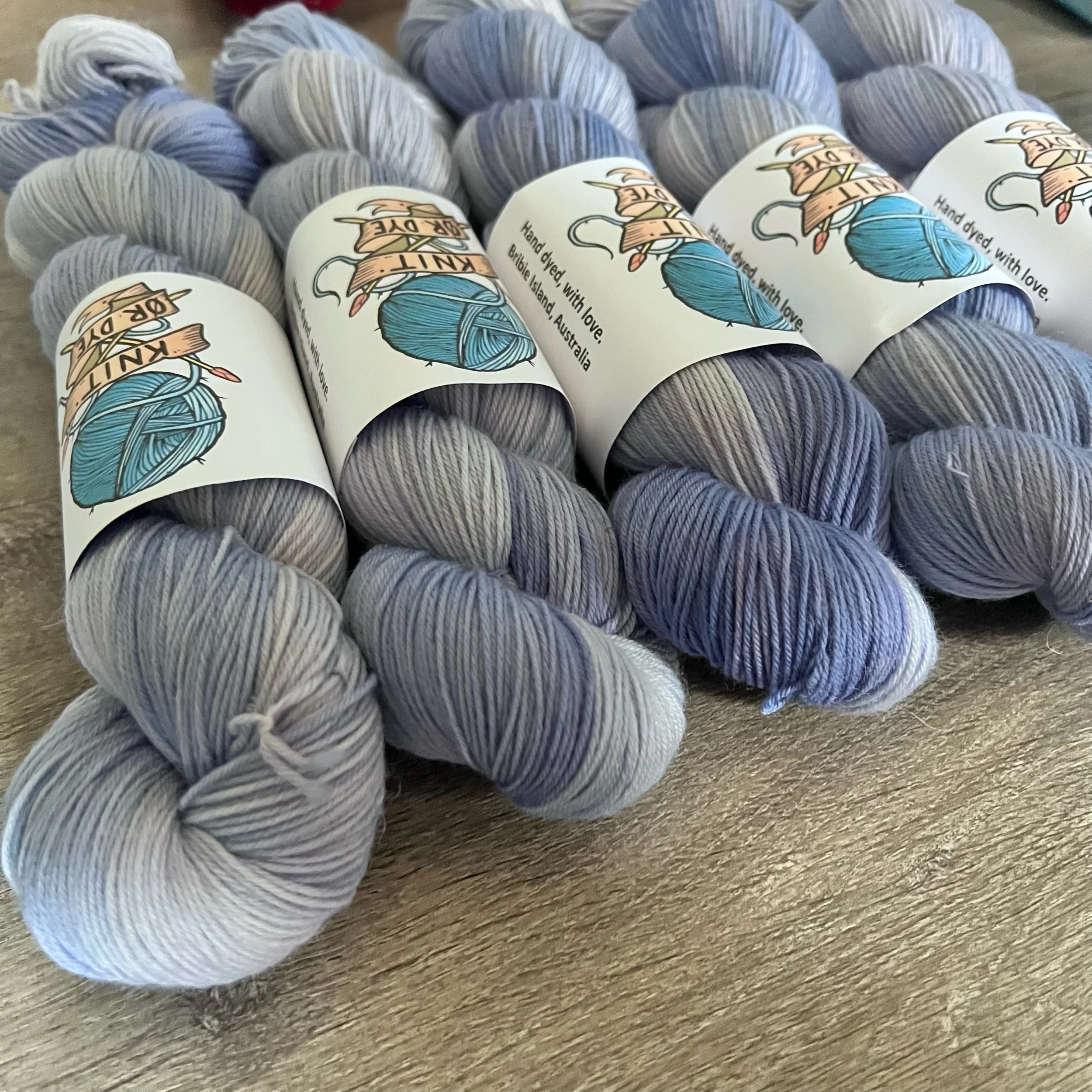 Soft, 75% superwash merino wool, 25% nylon sock yarn. Each skein is hand dyed with love ❤️. Skeins are ~ 100g, approx 425m. Fingering weight, or 4 ply (Australian weight).