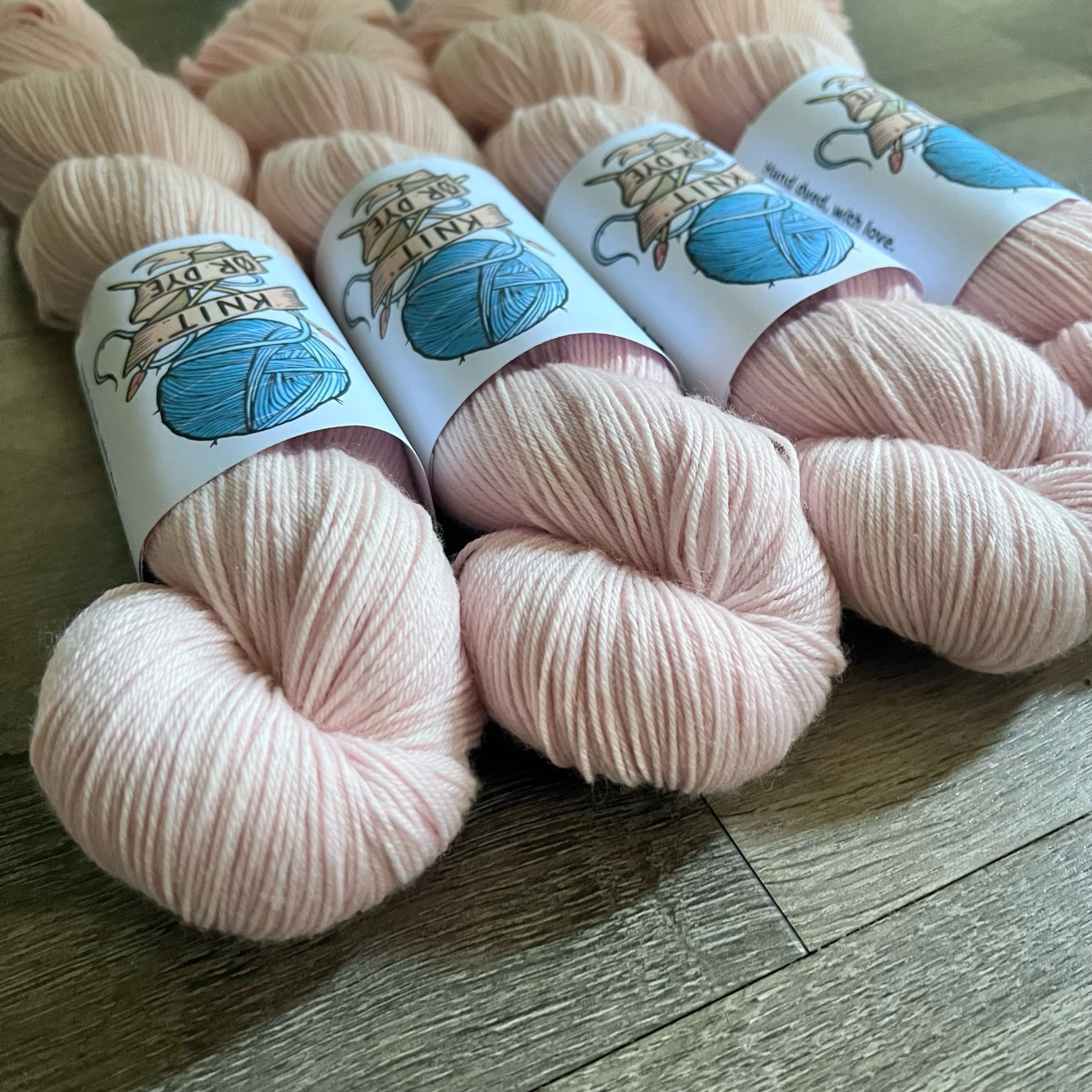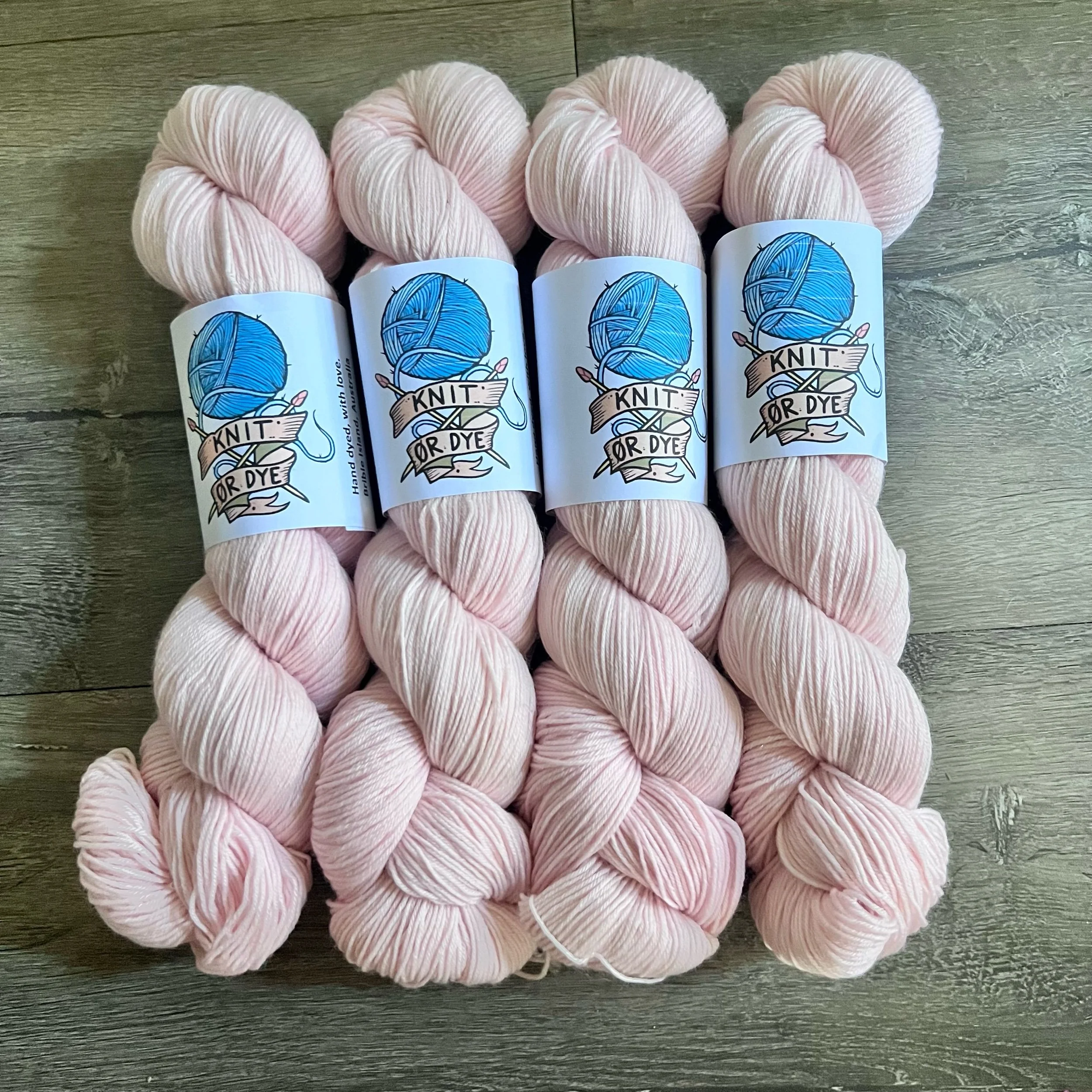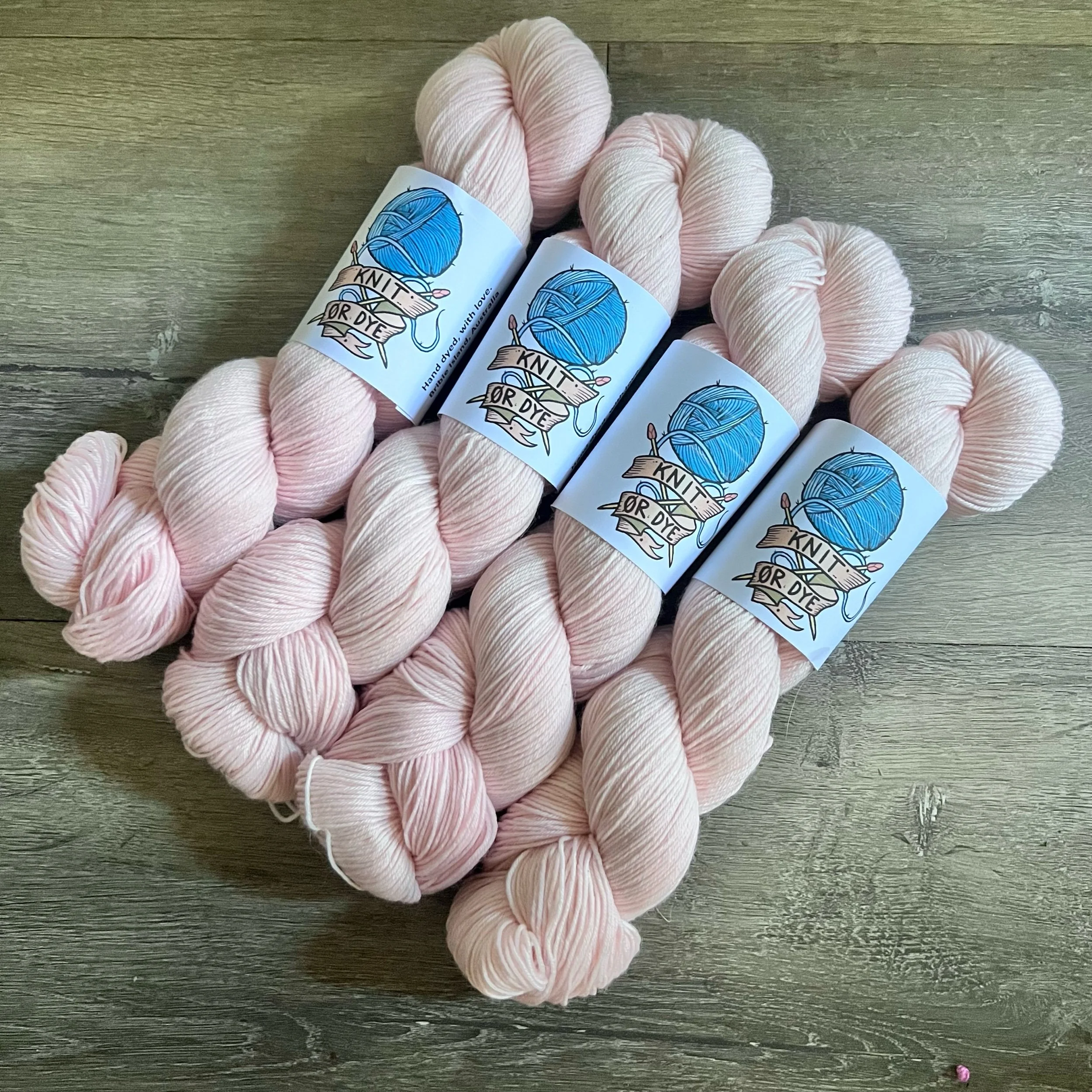 Soft, 75% superwash merino wool, 25% nylon sock yarn. Each skein is hand dyed with love ❤️. Skeins are ~ 100g, approx 425m. Fingering weight, or 4 ply (Australian weight).