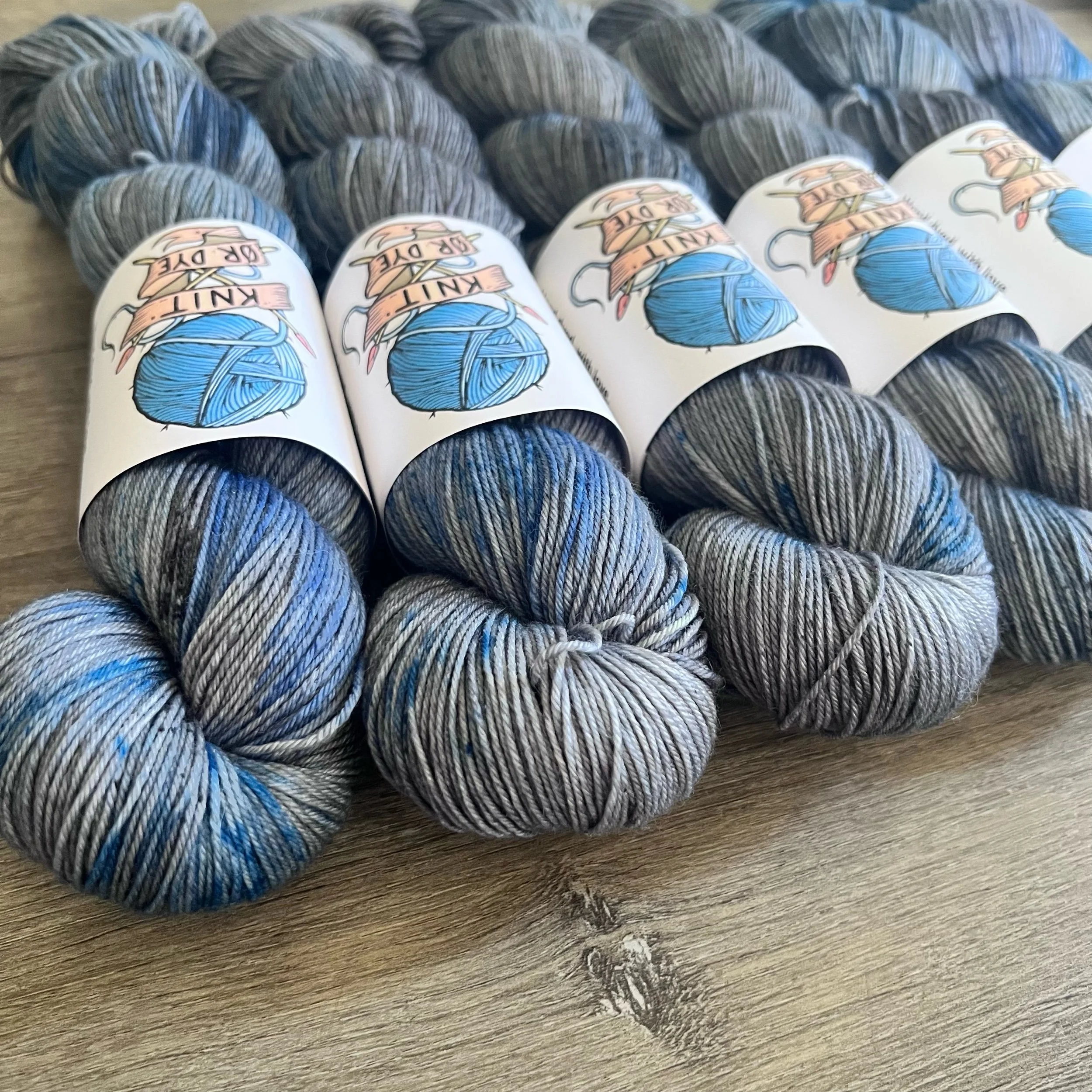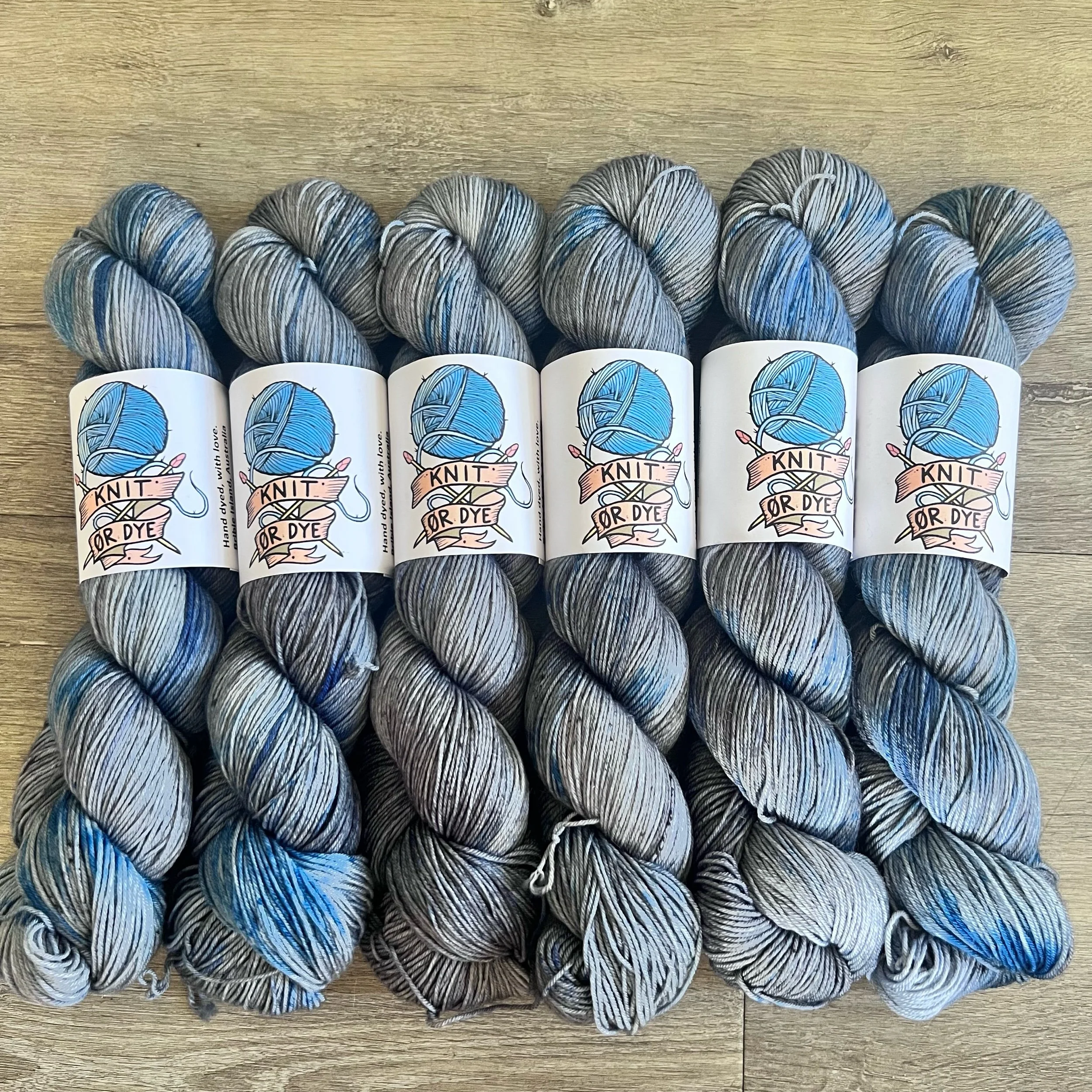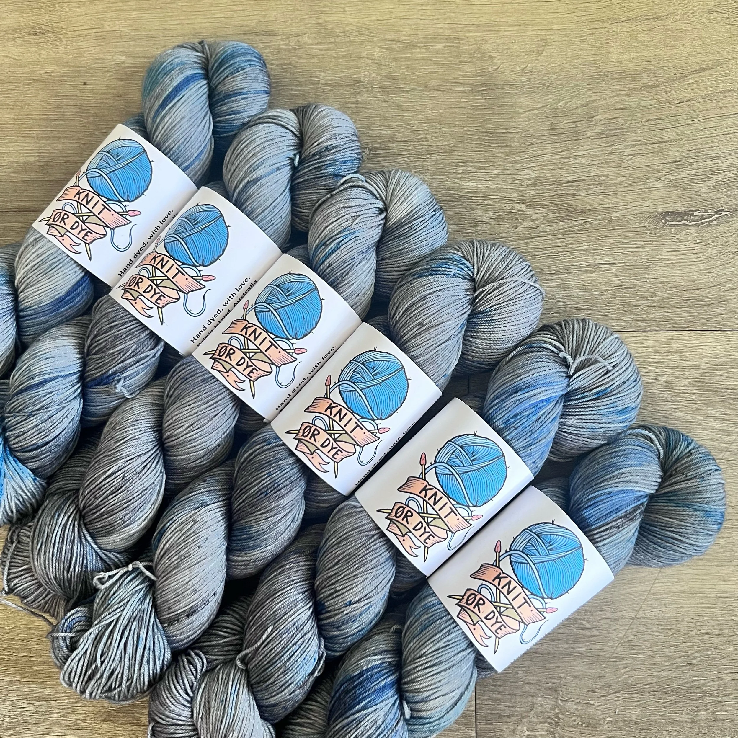 Soft, 75% superwash merino wool, 25% nylon sock yarn. Each skein is hand dyed with love ❤️. Skeins are ~ 100g, approx 425m. Fingering weight, or 4 ply (Australian weight).