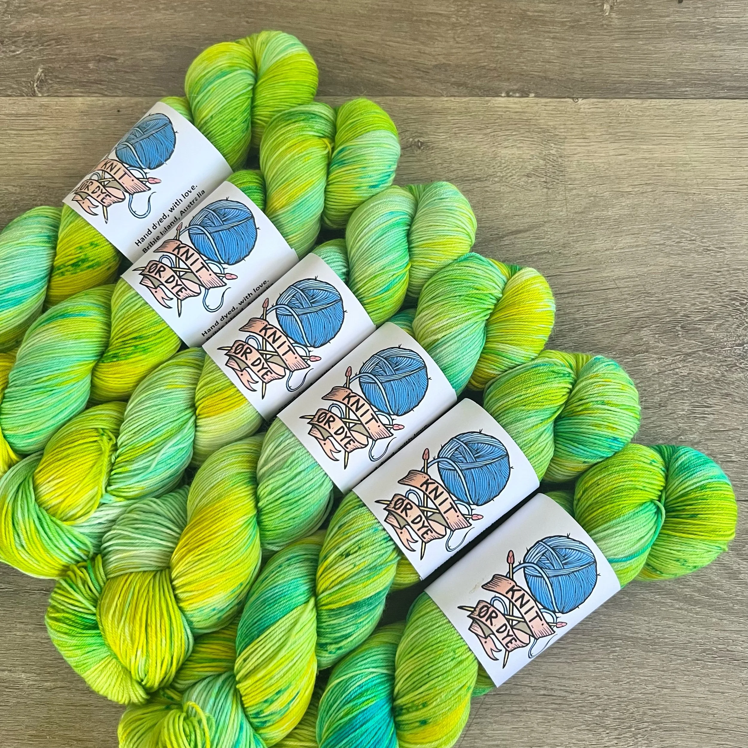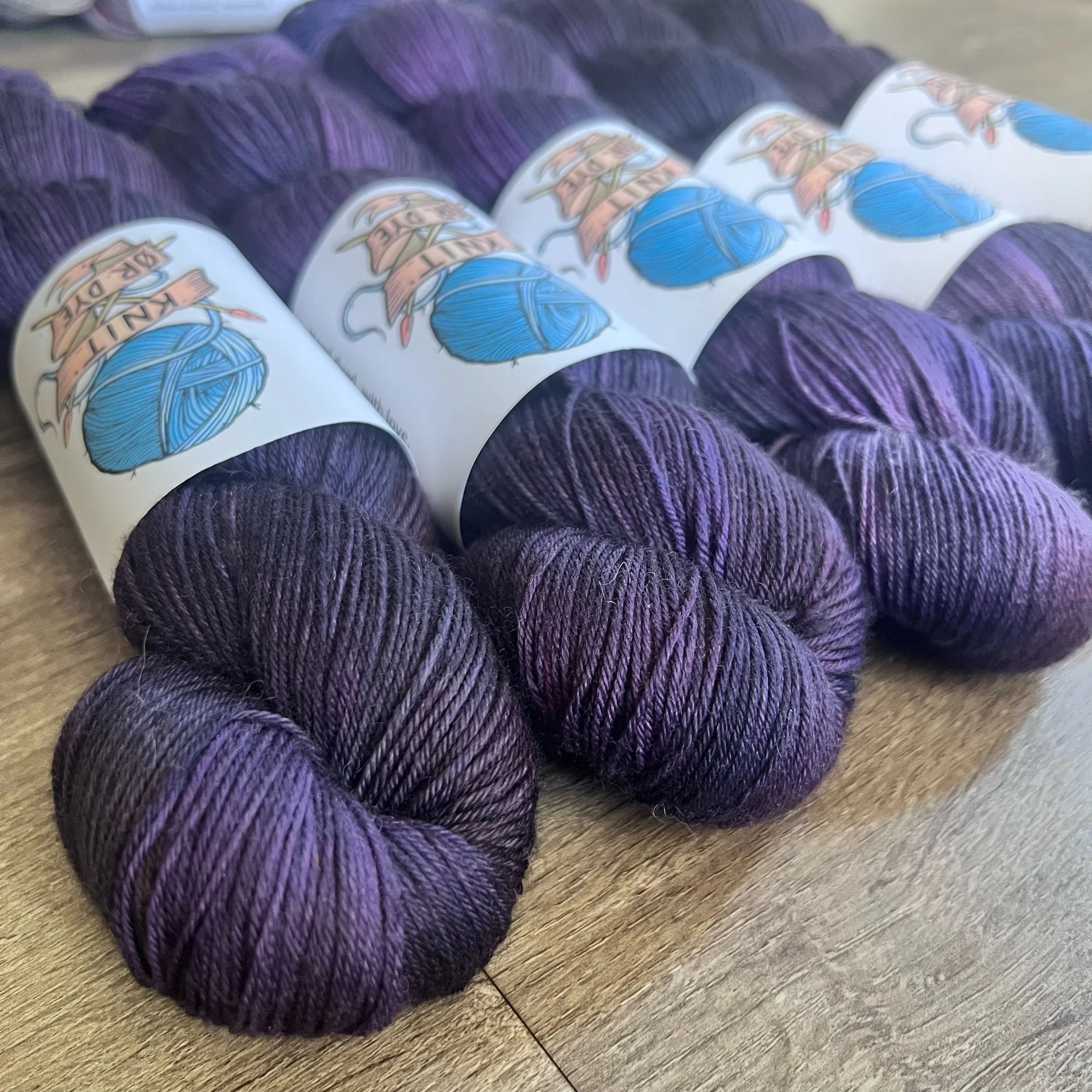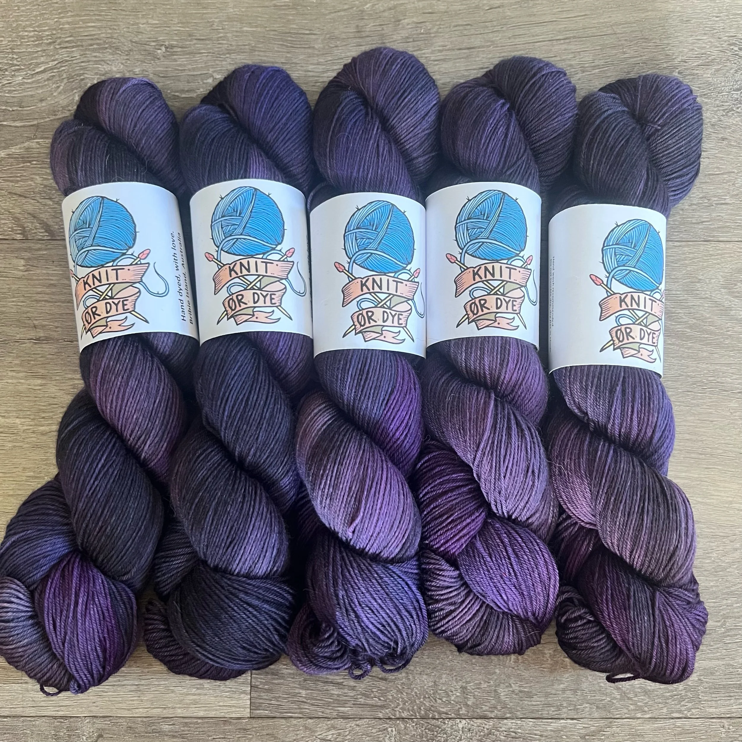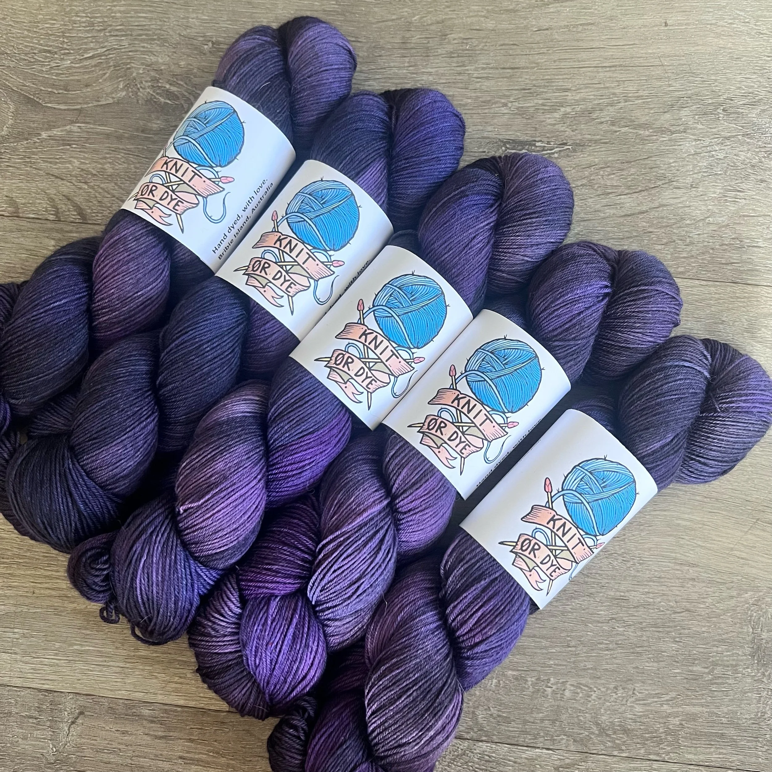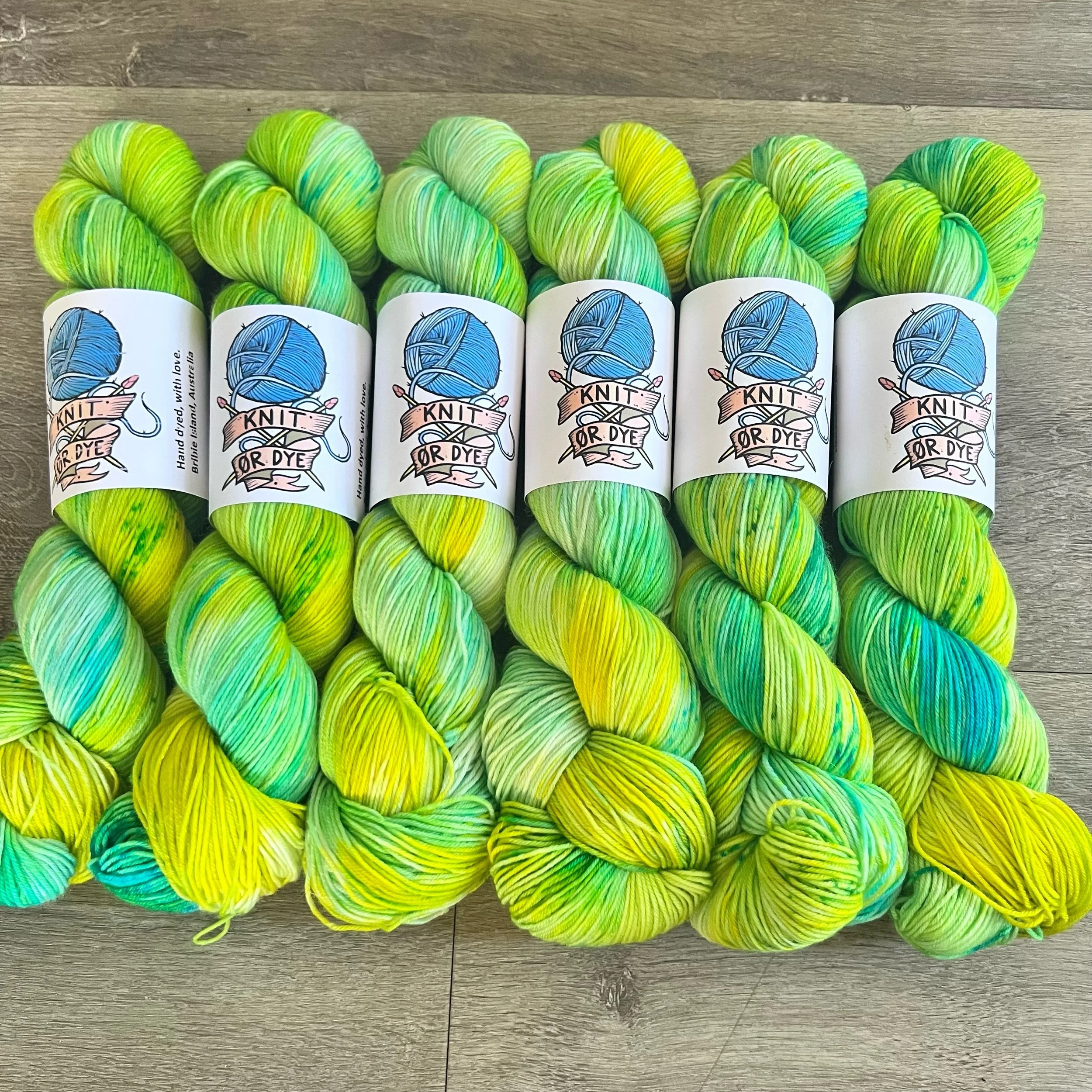Soft, 75% superwash merino wool, 25% nylon sock yarn. Each skein is hand dyed with love ❤️. Skeins are ~ 100g, approx 425m. Fingering weight, or 4 ply (Australian weight).