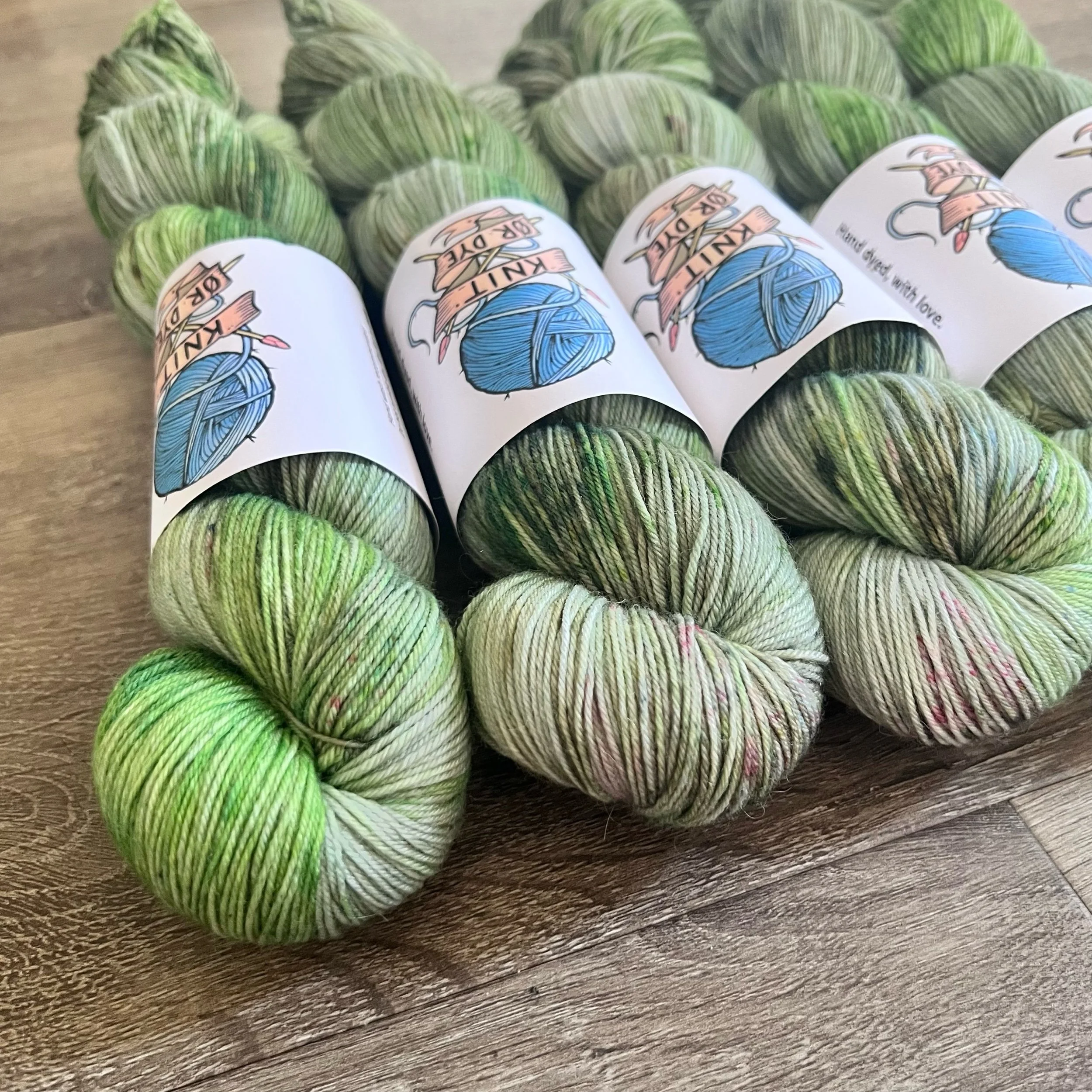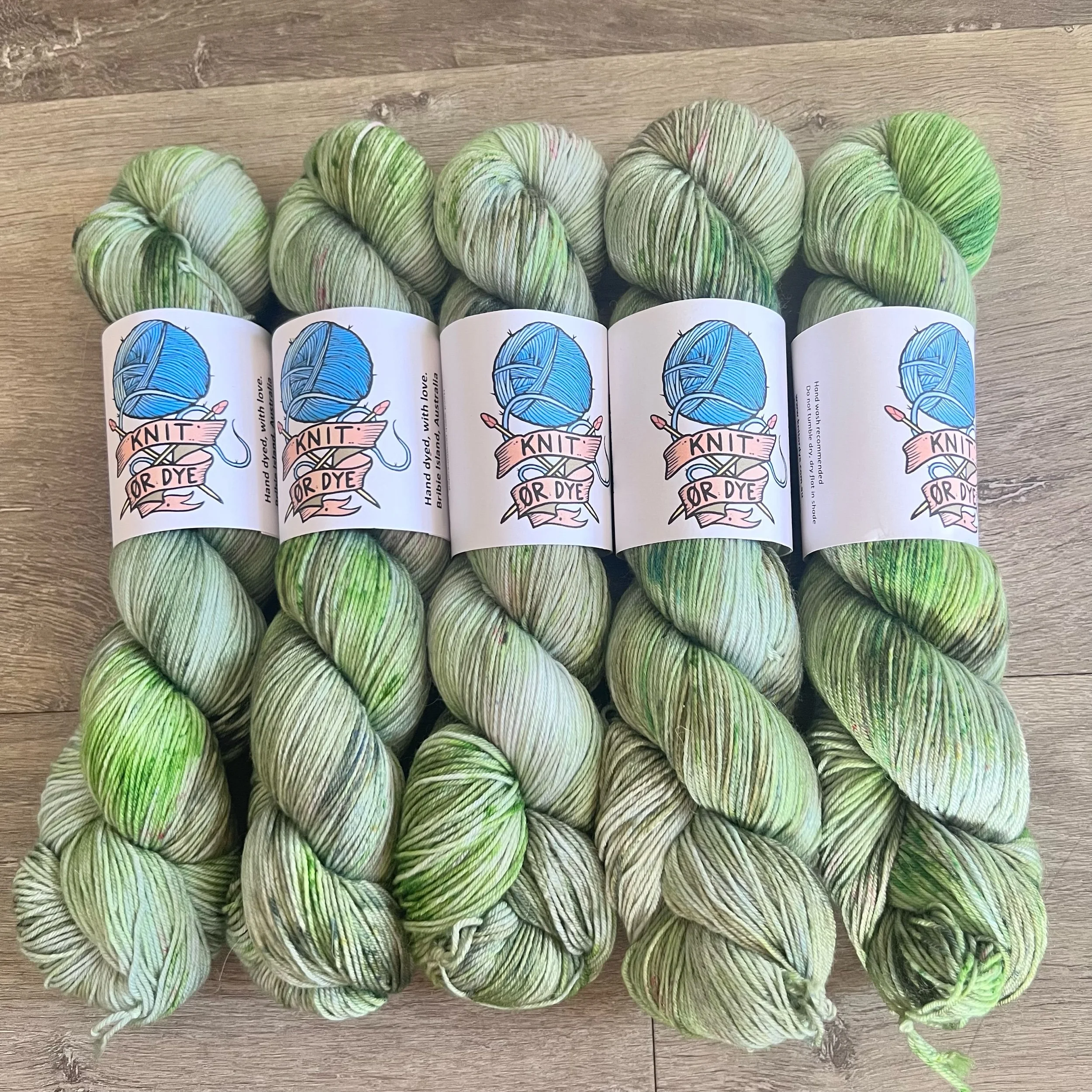 Soft, 75% superwash merino wool, 25% nylon sock yarn. Each skein is hand dyed with love ❤️. Skeins are ~ 100g, approx 425m. Fingering weight, or 4 ply (Australian weight).