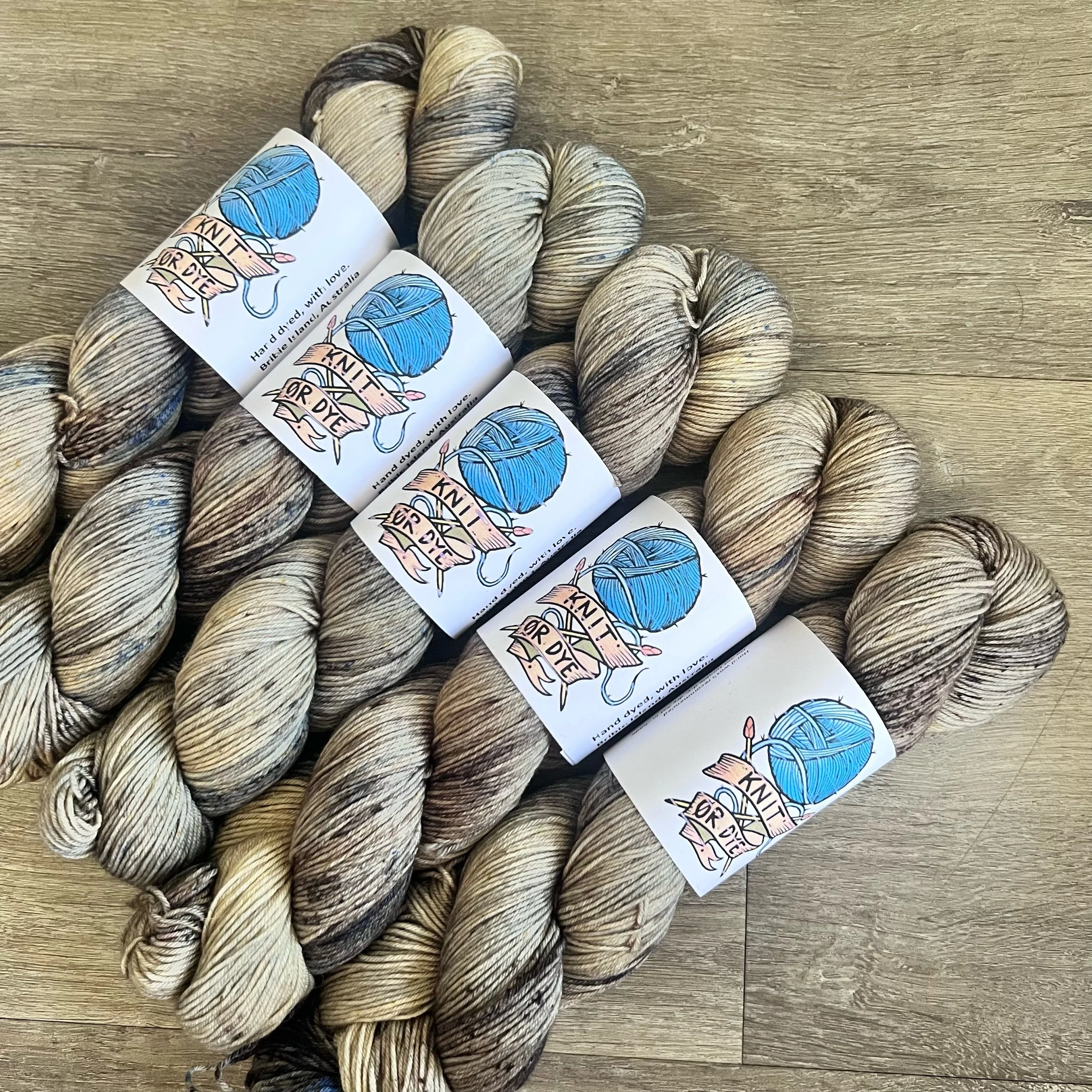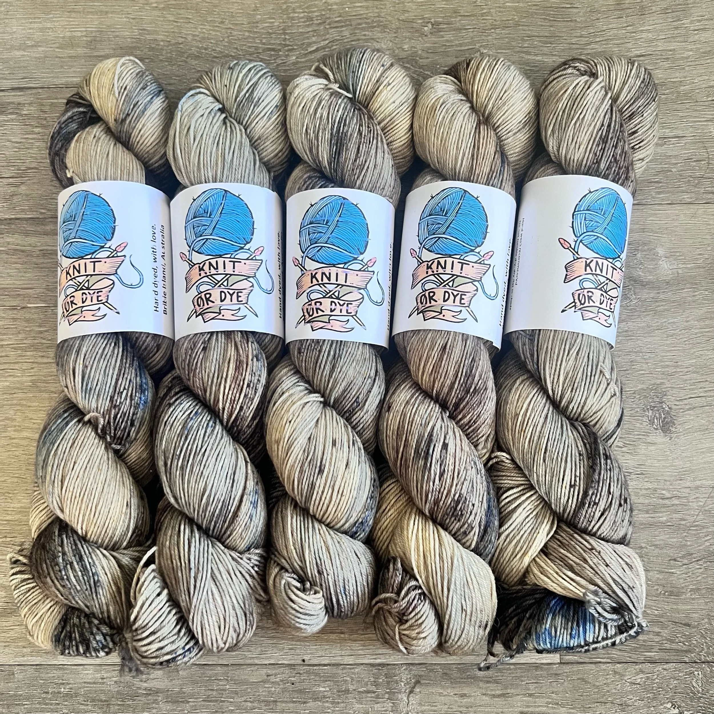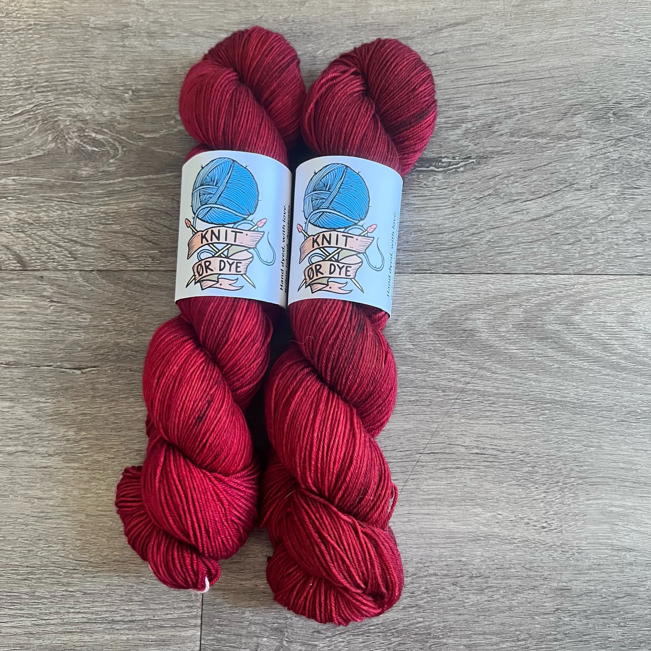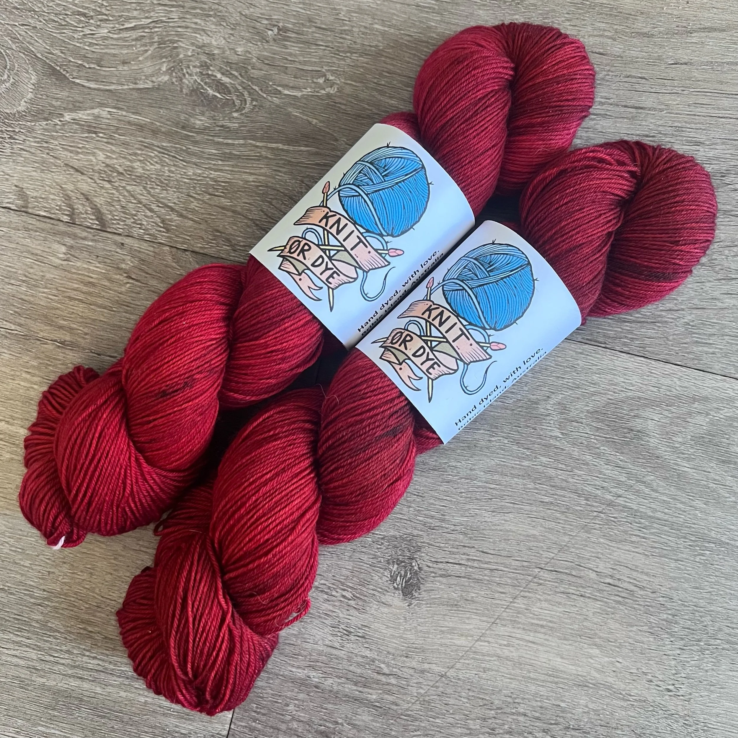 Soft, 75% superwash merino wool, 25% nylon sock yarn. Each skein is hand dyed with love ❤️. Skeins are ~ 100g, approx 425m. Fingering weight, or 4 ply (Australian weight).