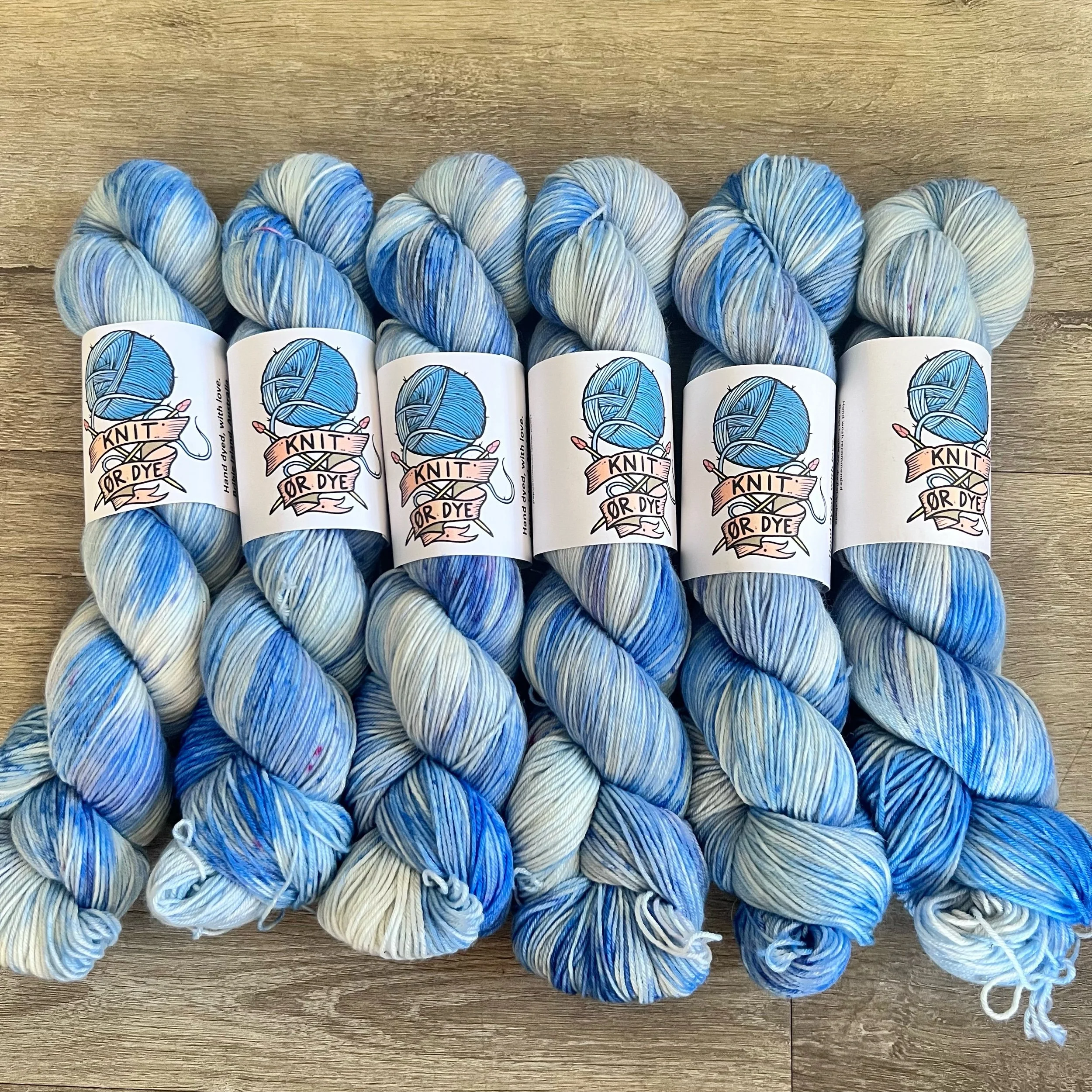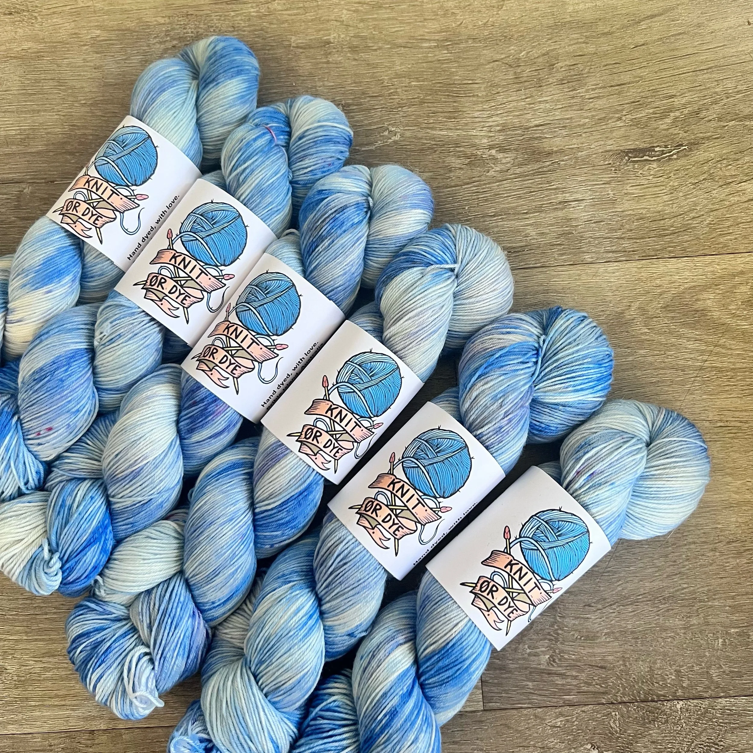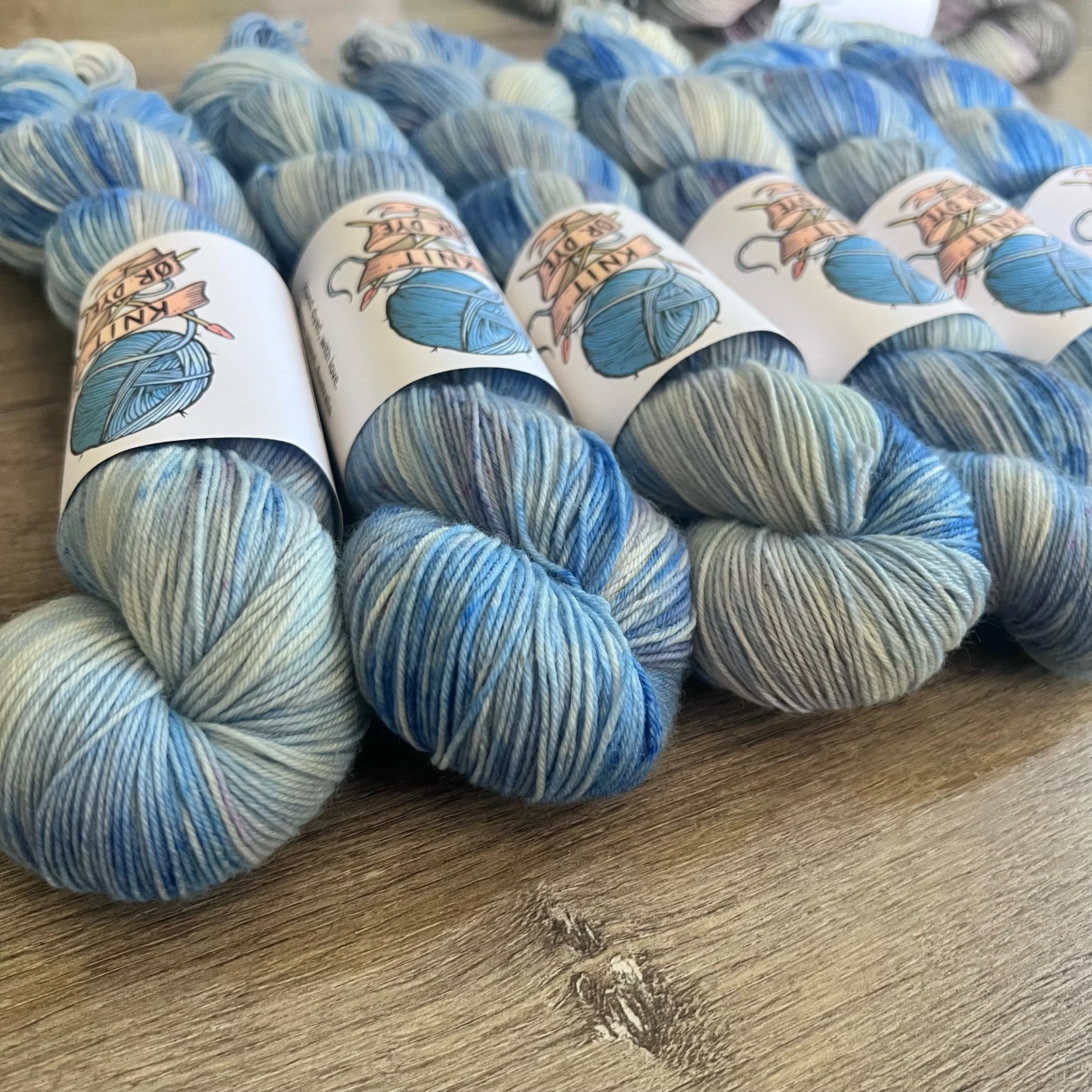 Soft, 75% superwash merino wool, 25% nylon sock yarn. Each skein is hand dyed with love ❤️. Skeins are ~ 100g, approx 425m. Fingering weight, or 4 ply (Australian weight).